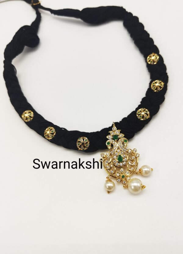 Be the first to review “Black thread necklace with peacock pendant floral design”