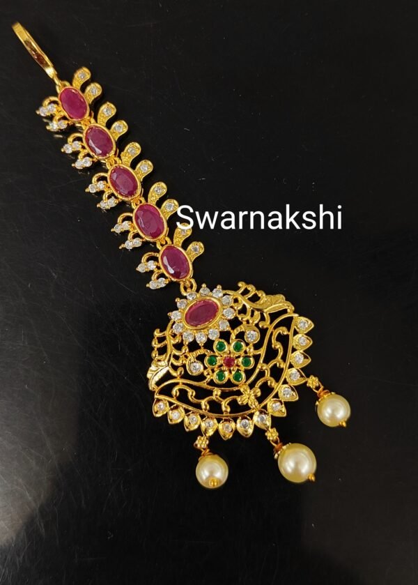 one gram gold ruby stone damini style maangtika