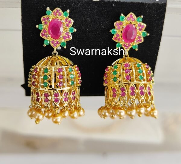 1 gram gold cz ruby stone star floral jhumkas