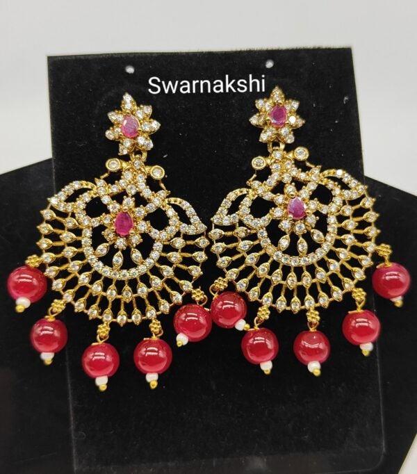 Chandbali earrings Cz and Red beads drop attractive model