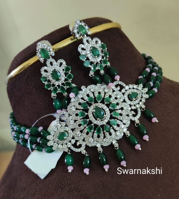 choker and armlet CZ ruby emerald stone design