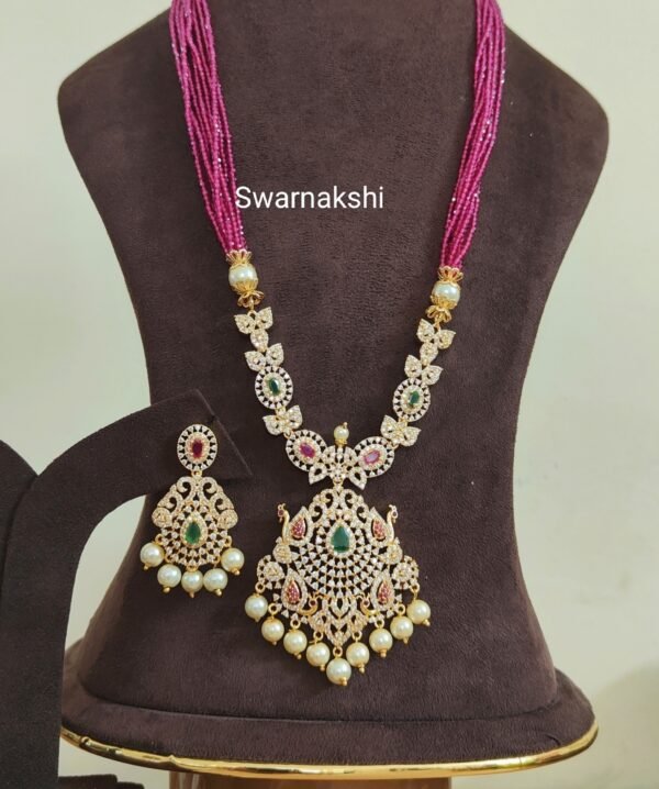 Pearl chain designs with pendant uncut stone model