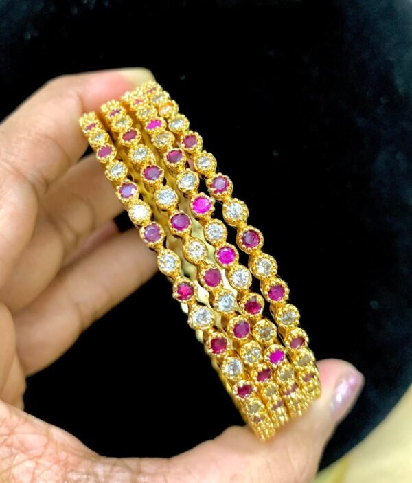 Ruby stone bangles 2.6 size with white stone combination