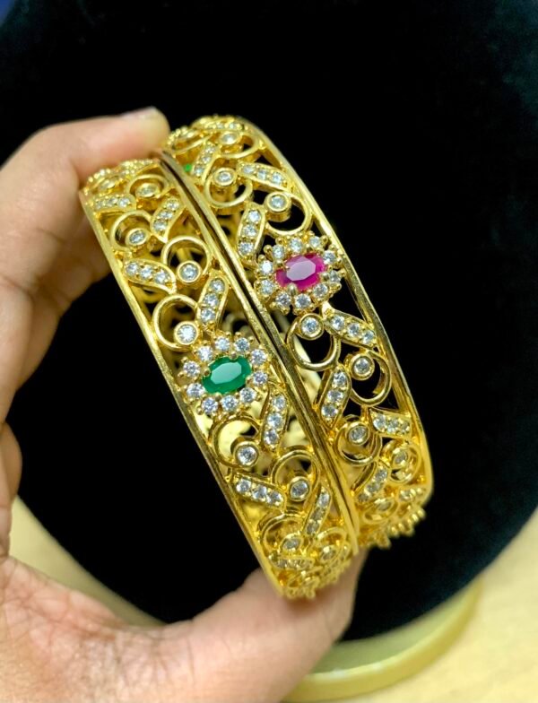 CZ bangles set 2.8 size with ruby and emerald stones attractive design
