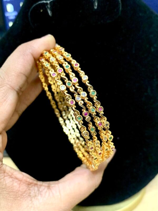 One gram gold bangles price 2.4 size with green and ruby stones trending look