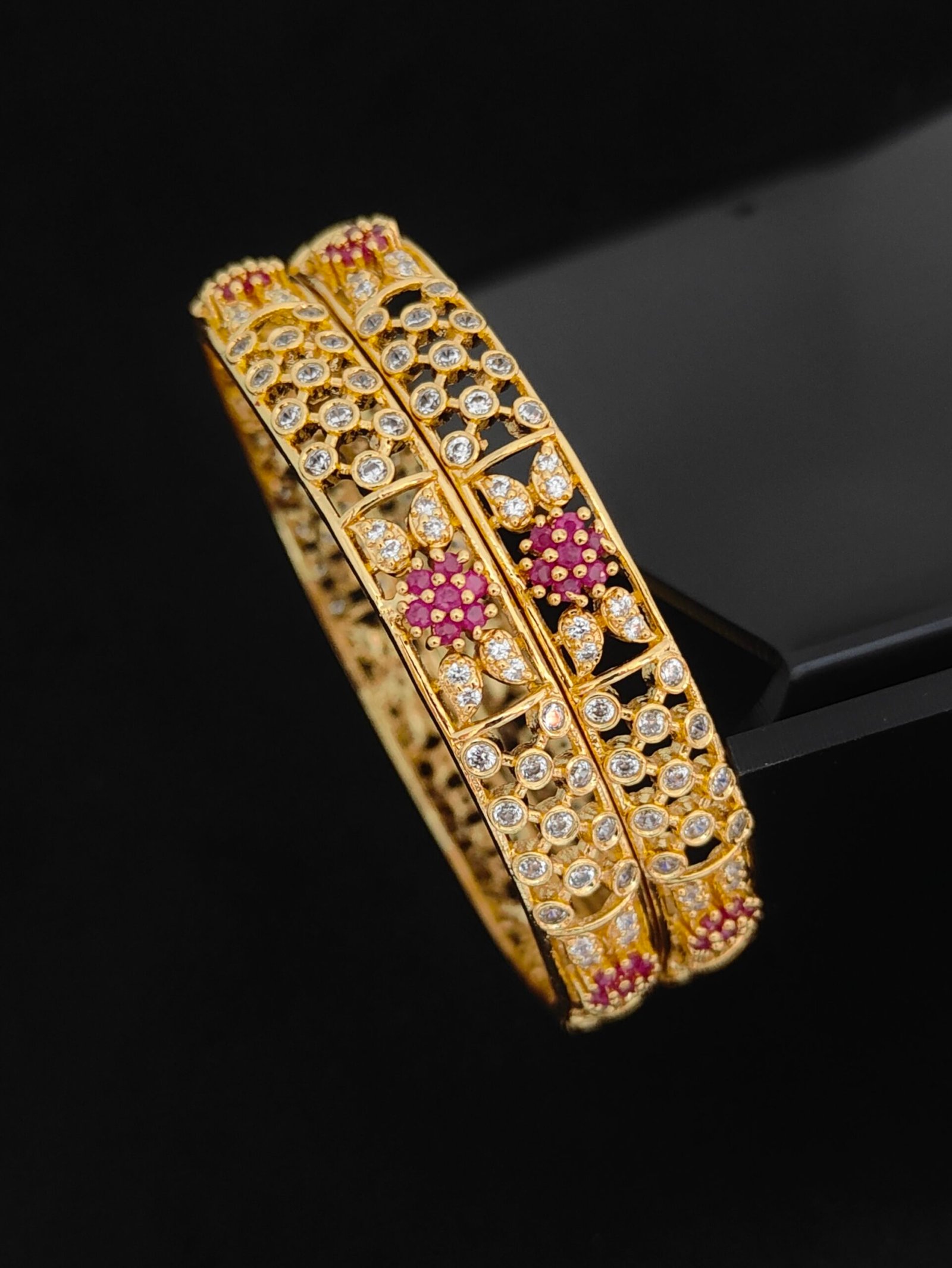 CZ bangles online 2.6 size with pink and white stone bangles