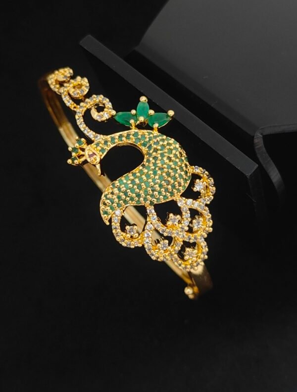 CZ bracelet for women green stone with peacock design