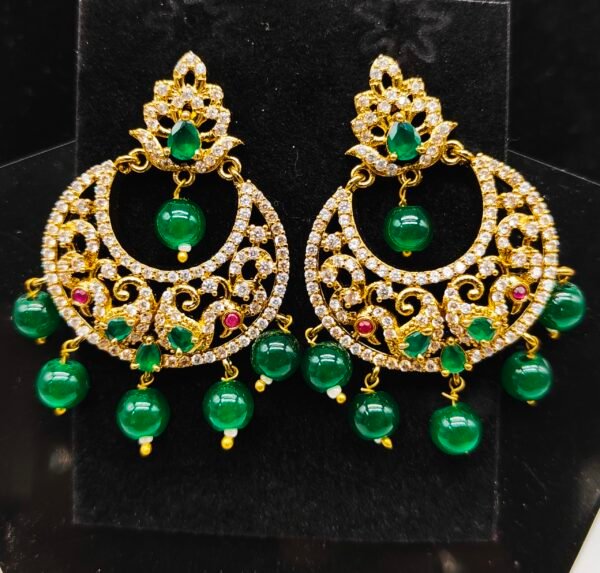 CZ chandbali earrings multi color stones green beads drop model