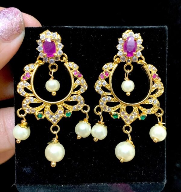 Be the first to review “CZ chandbali images with ruby stone model”