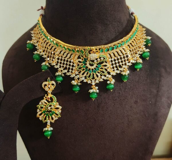 CZ choker set with price green stone and beads model