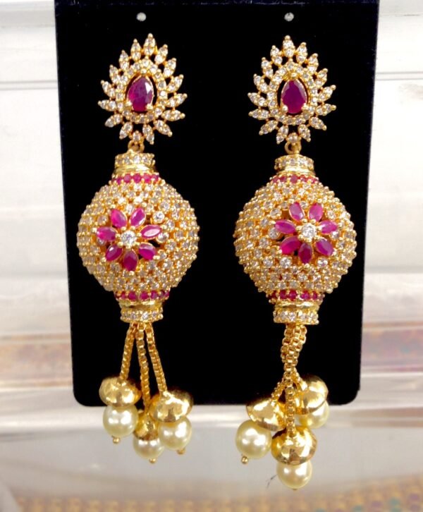 Be the first to review “CZ dangle earrings with ruby stones grand design”