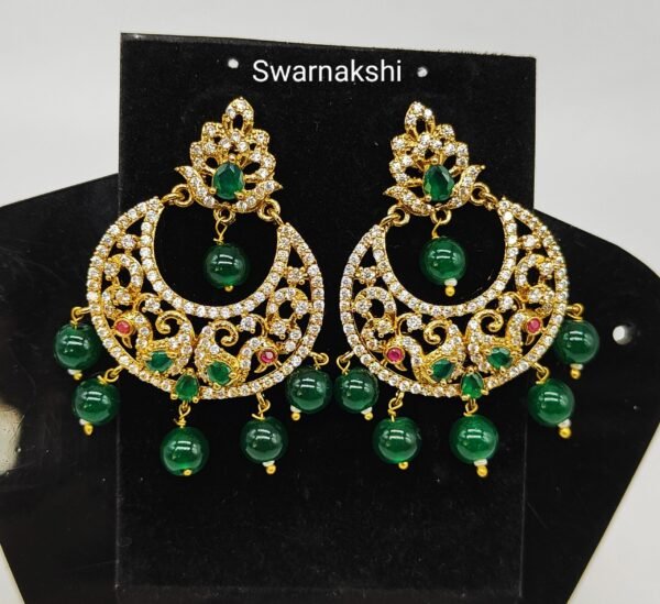 Cz earrings models green beads drop Chandbali design