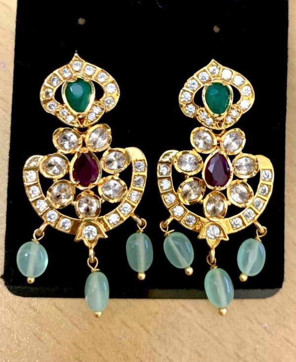 CZ earrings with emerald & ruby stones chandbali design