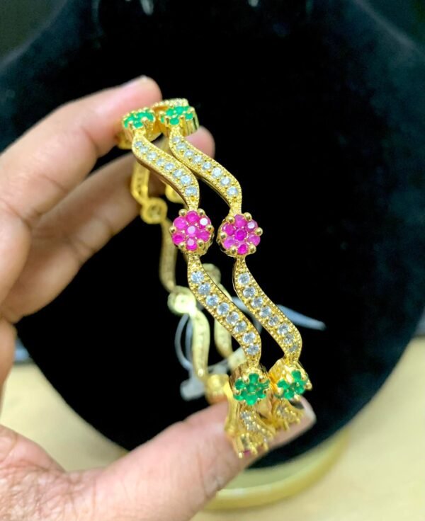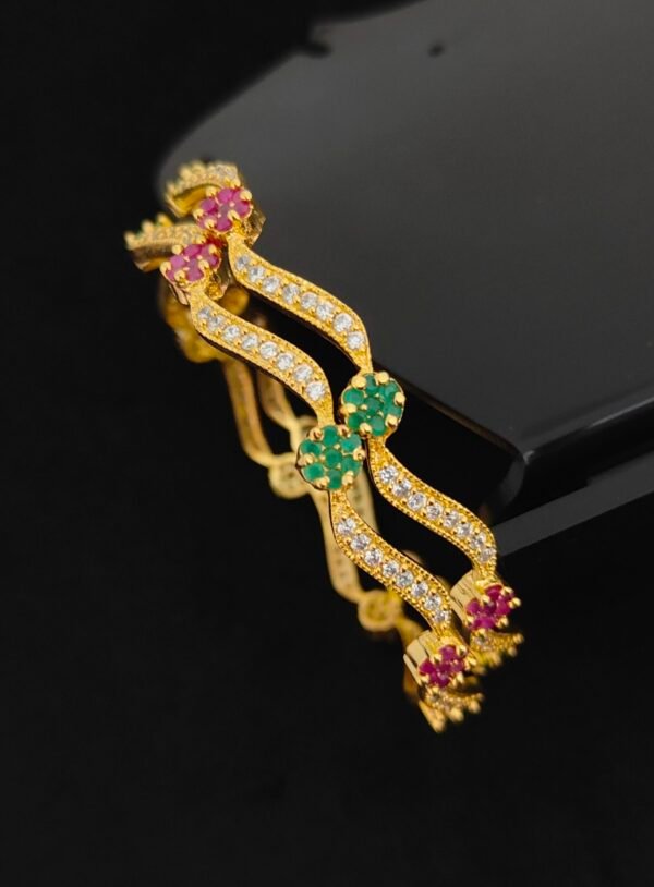 Be the first to review “CZ floral design bangles 2.6 size with ruby and emerald stone design”