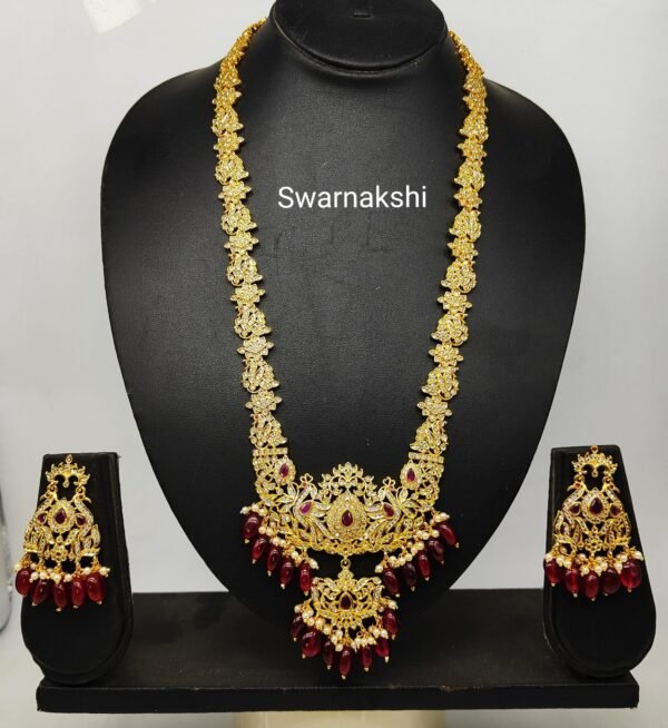 one gram gold long haram designs with cz ruby stone model long necklace