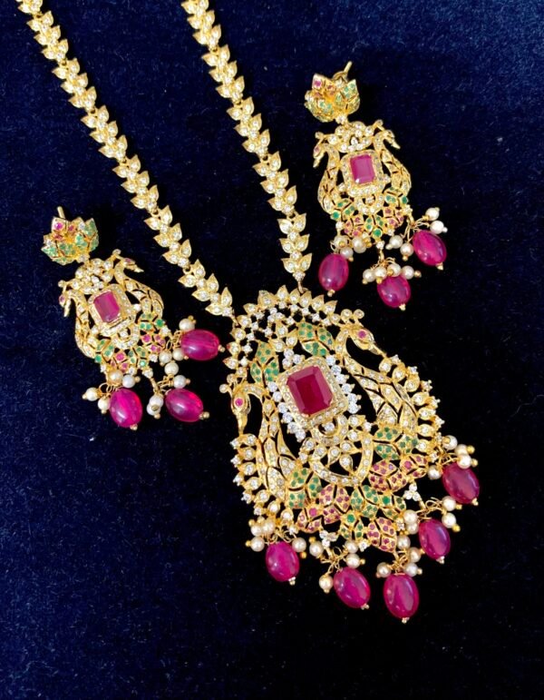 CZ haram with big peacock pendant and earrings set
