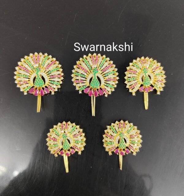 Be the first to review “CZ jada billalu online ruby & emerald stones peacock design”