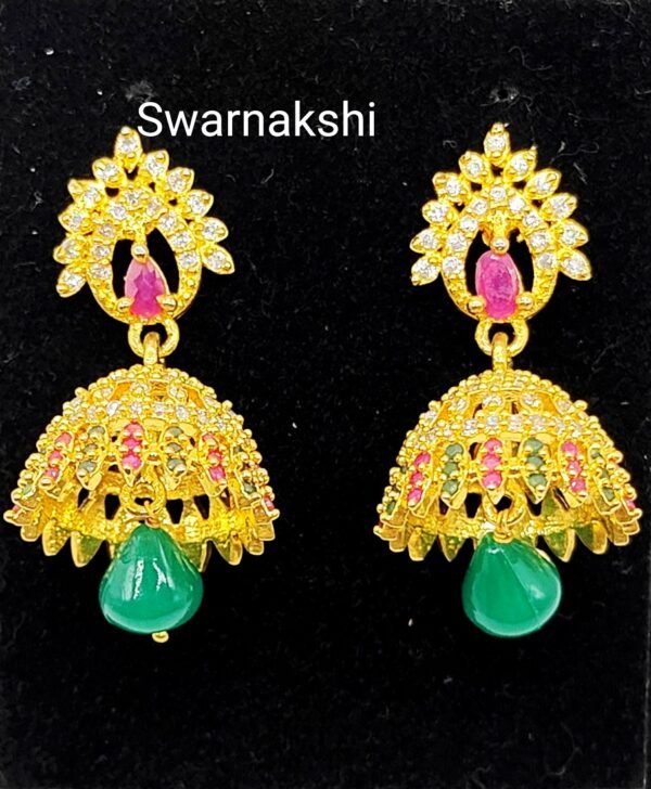 Be the first to review “CZ jhumkas models with price with green bead design”