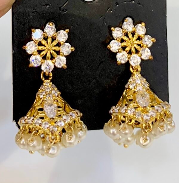 CZ Stone jhumkas bell shaped design model