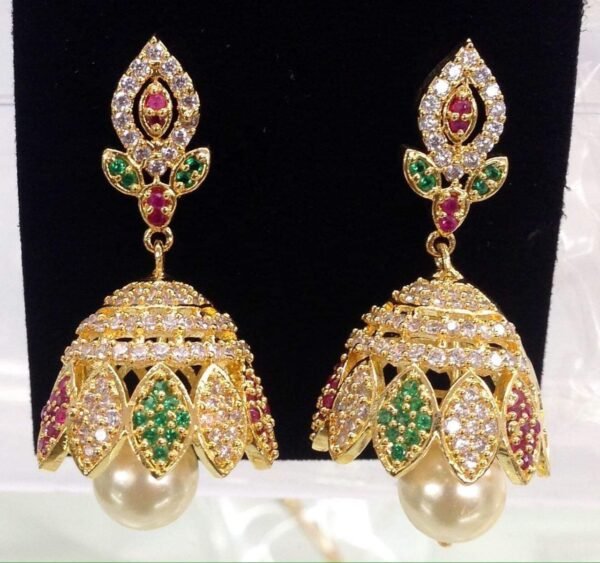 Be the first to review “CZ jhumkas with multi colour stones leaf design”
