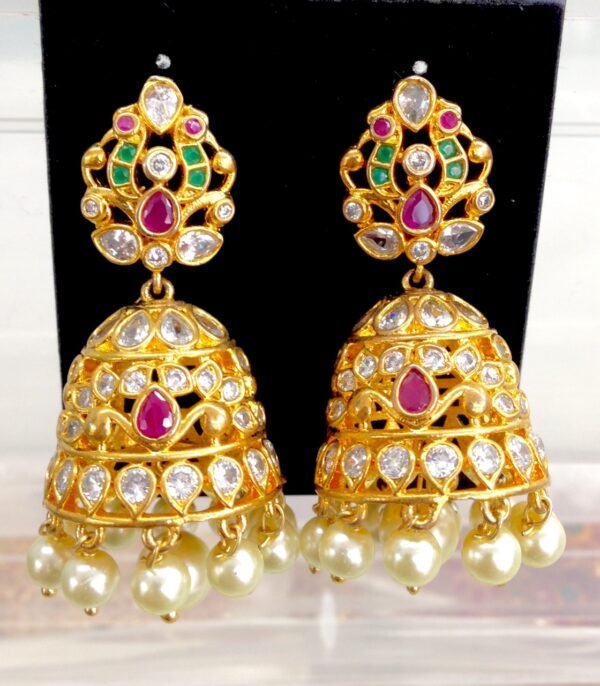 CZ jhumkas with price pearls model
