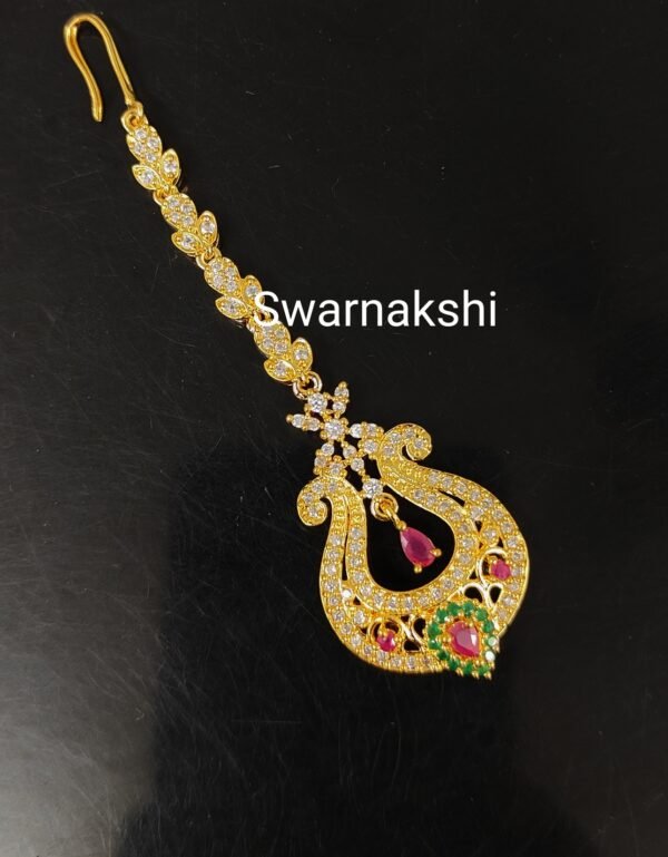 Be the first to review “CZ maang tikka online with ruby drop model chandbali design”