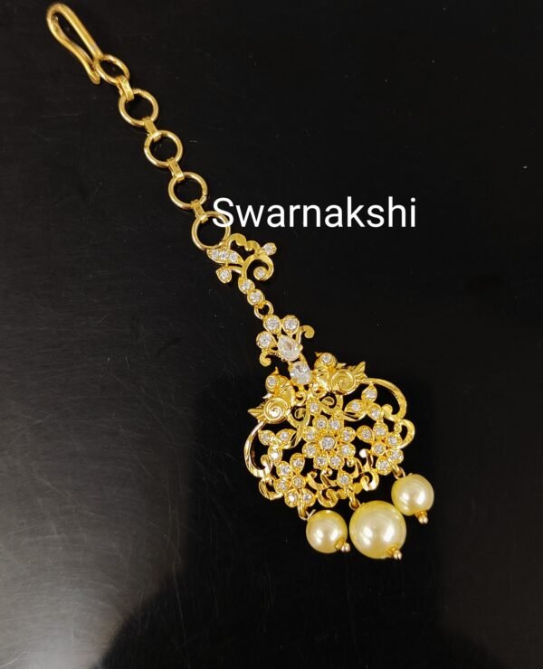 CZ maang tikka with pearls pendant