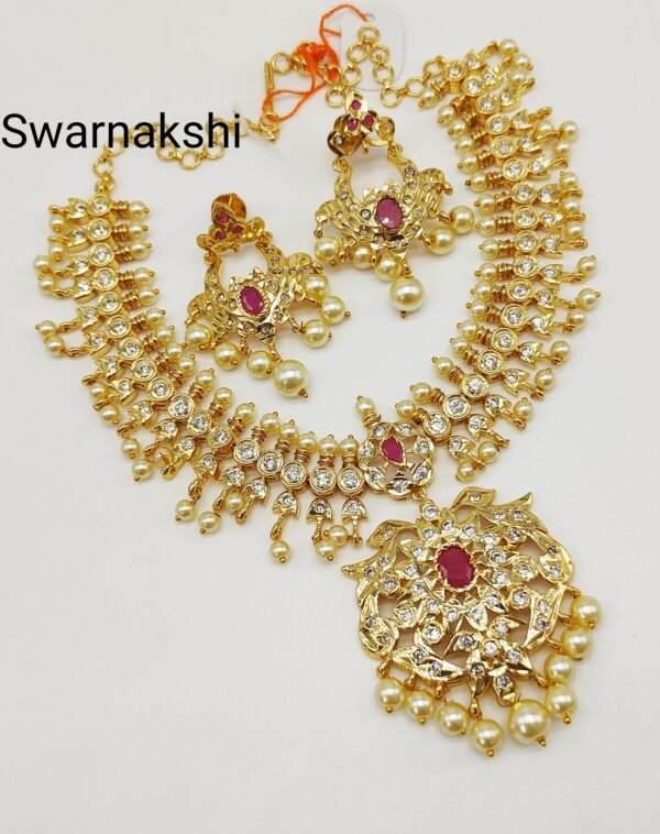 Ruby necklace set designs with pearls & matching earrings