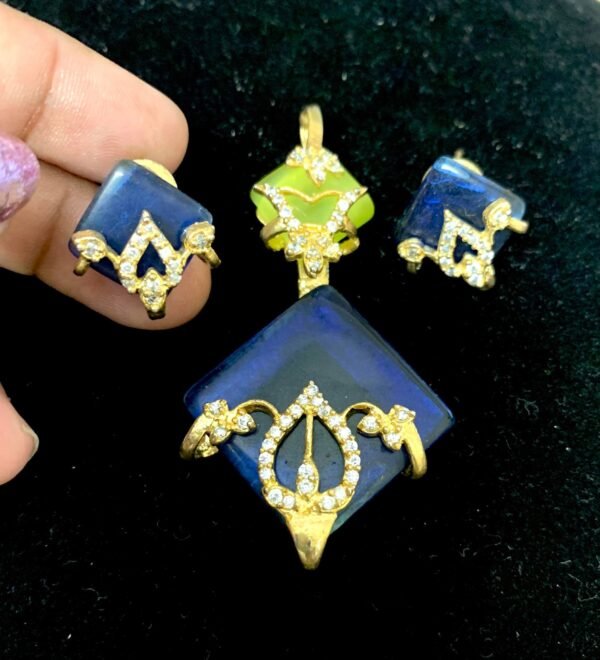 Be the first to review “CZ pendant for ladies colourful design with earrings”