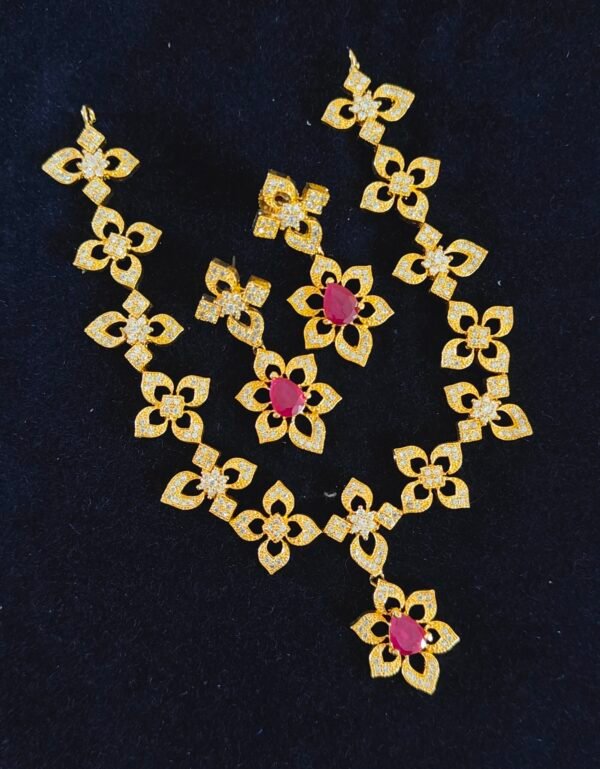 Be the first to review “CZ short necklace set models online with floral design chain and earrings”
