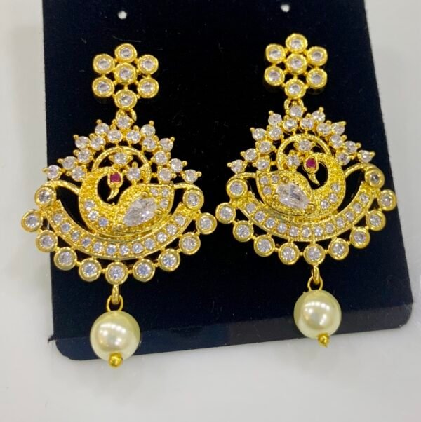 CZ stone earrings online with peacock design pearl model