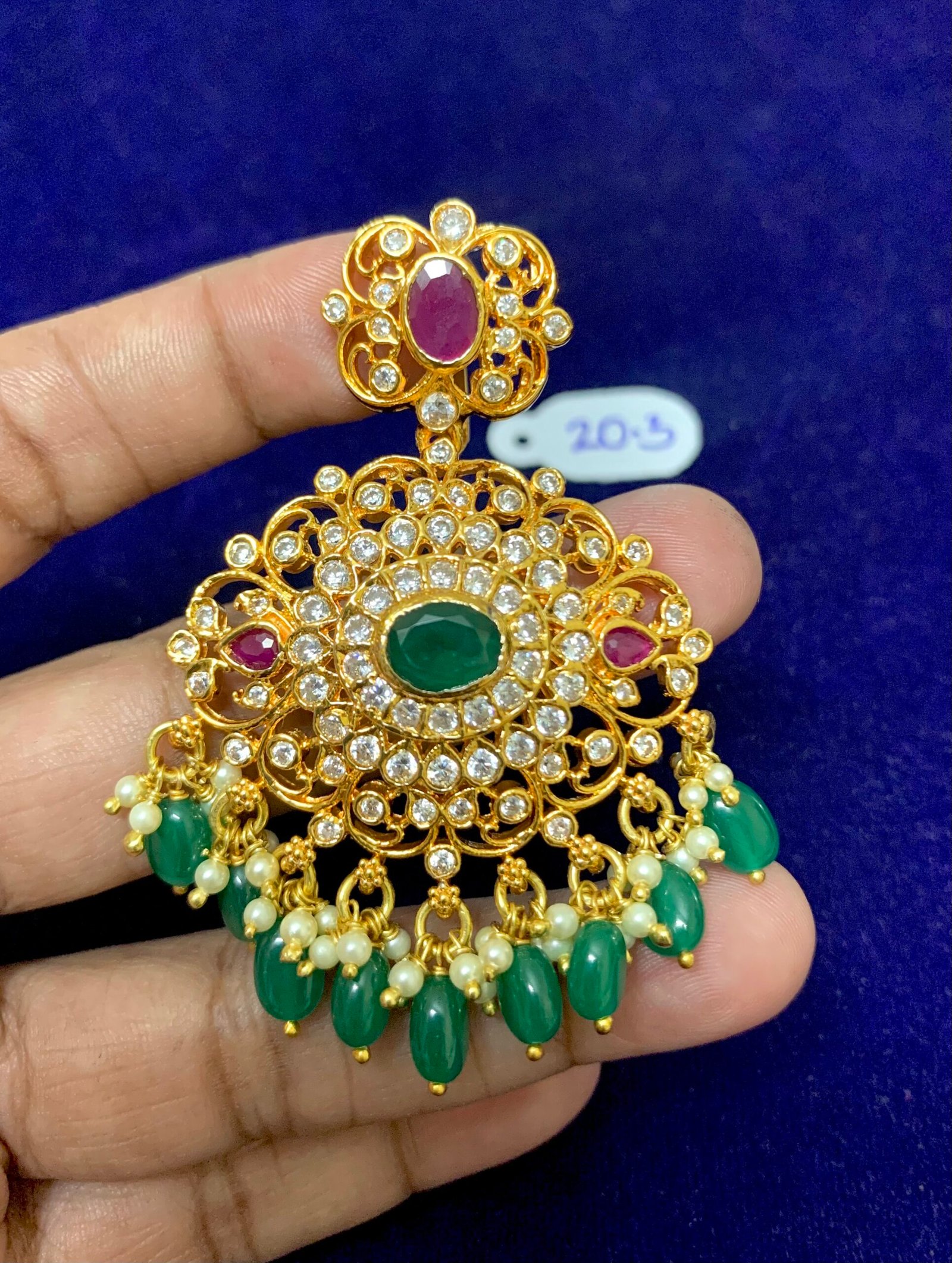 Be the first to review “CZ stone grand look Gold polished Silver pendant with pearl drops”