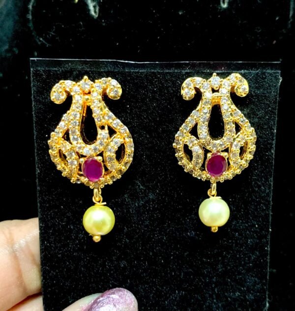 CZ studs designs with ruby stones and peacock design