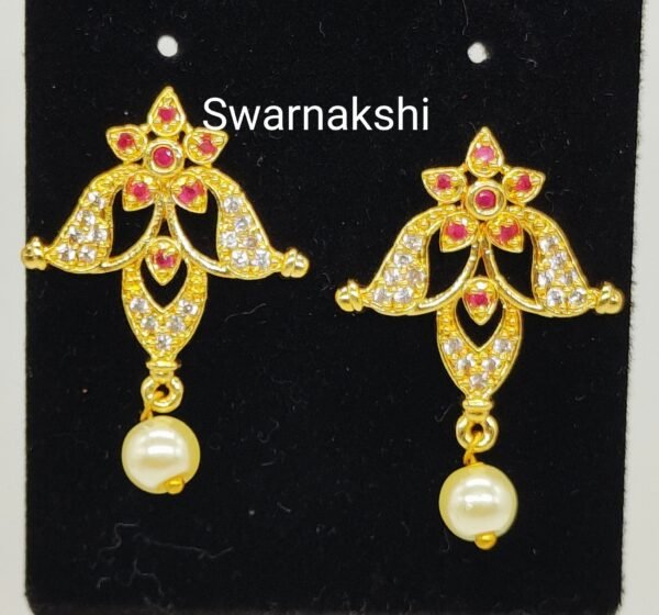 Stud model earrings images with cz and ruby stones
