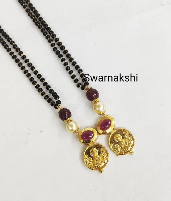 Be the first to review “Double layer black beads mangalsutra with lakshmi kasu design pendant”