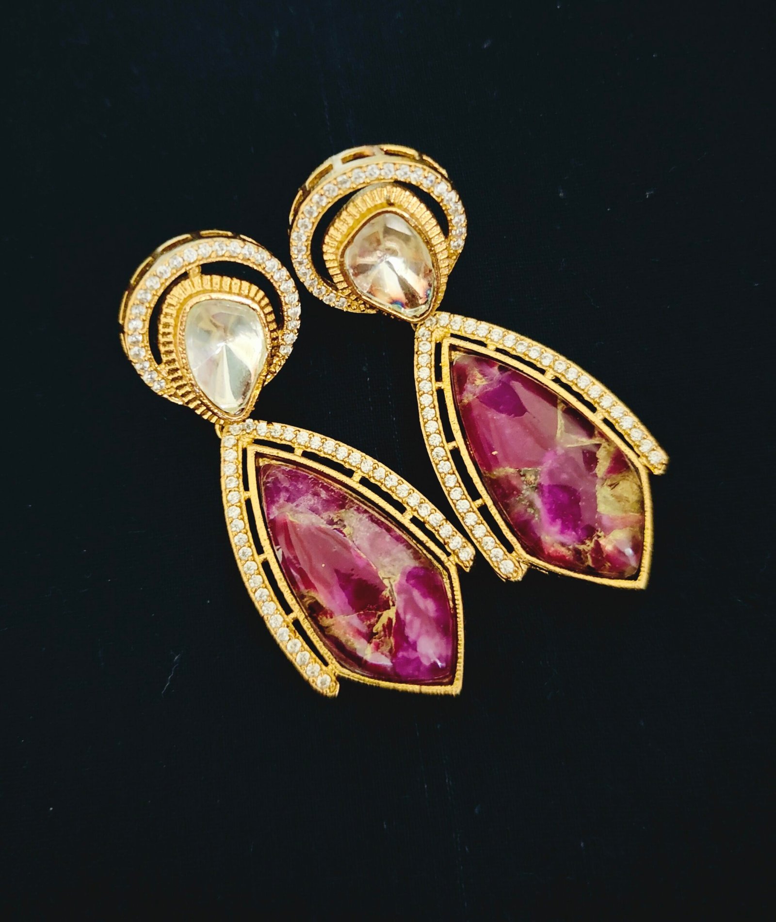 big size Chandbali earrings designs with pink and white stone