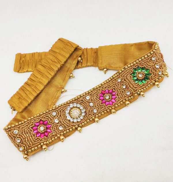 embroidered waist belt for saree with kundan stones model