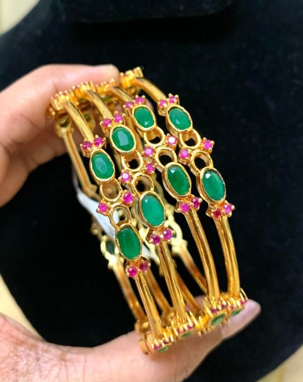 Emerald stone bangles 2.6 size with oval design