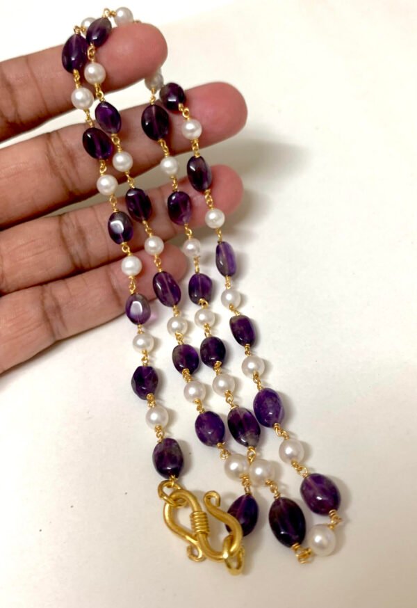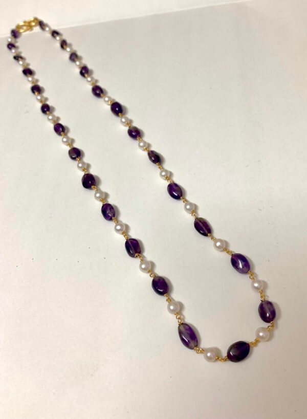 Item Description : Silver chain with Amethyst beads and fresh water Pearls chain single layer 21 inch model