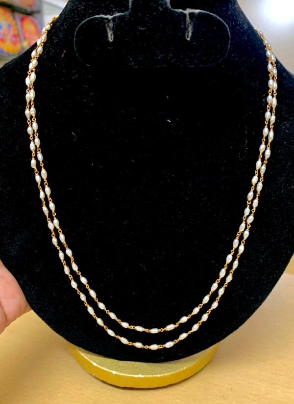 Fresh Water Rice Pearls Chain made in Silver 20 inch length