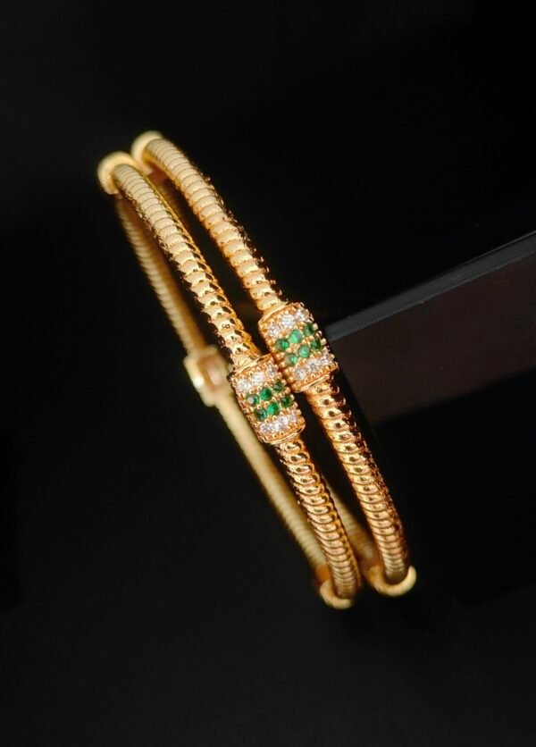 1 gram gold bangles 2.10 size with emerald stones and leaf design