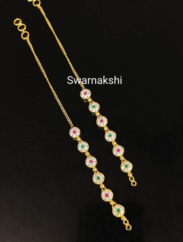 1 gram gold matt finish ear chains ruby emerald stone peacock model buy online