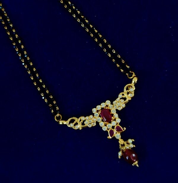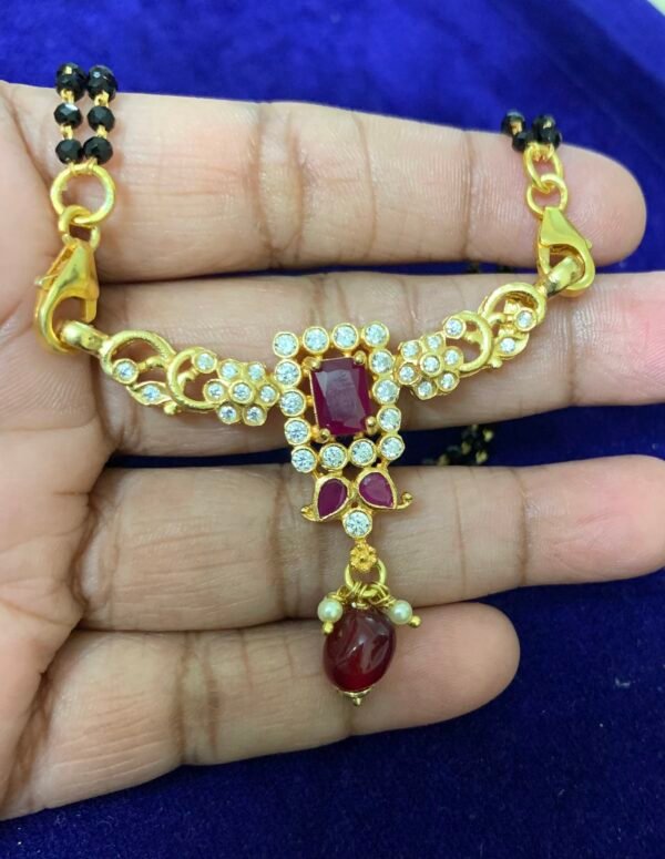 Be the first to review “Gold plated Silver black beads chain Ruby stones Simple pendant 2 layers”