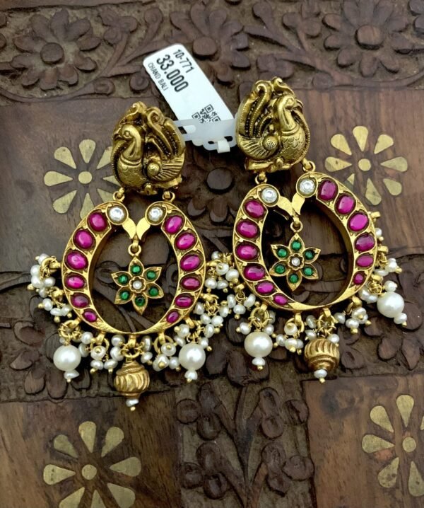 Be the first to review “Gold plated silver earrings Nakshi peacock chandbali big size”