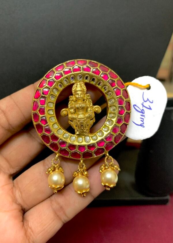 Be the first to review “Gold plated silver jewellery with pota stone lakshmi pendant”