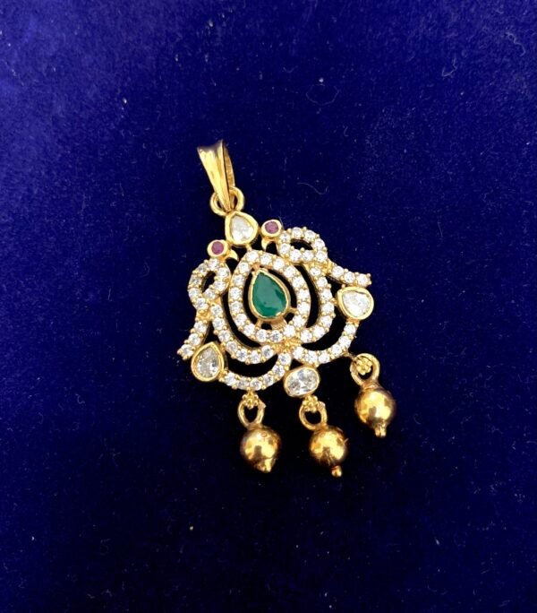 Item Description : Gold polished Silver pendant CZ and green Onyx stone with golden drops