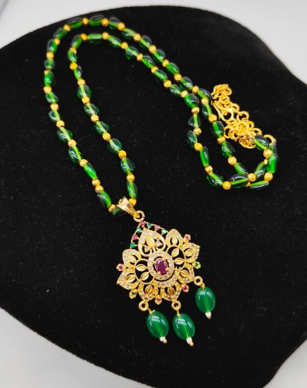 Be the first to review “Green beads chain Ruby stone CZ pendant model”