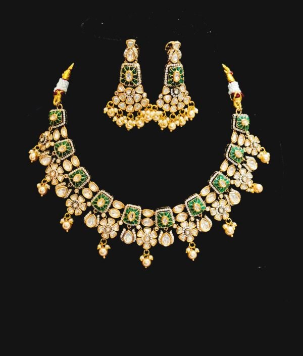 Be the first to review “Green polki necklace White stone with matching earrings bridal set”