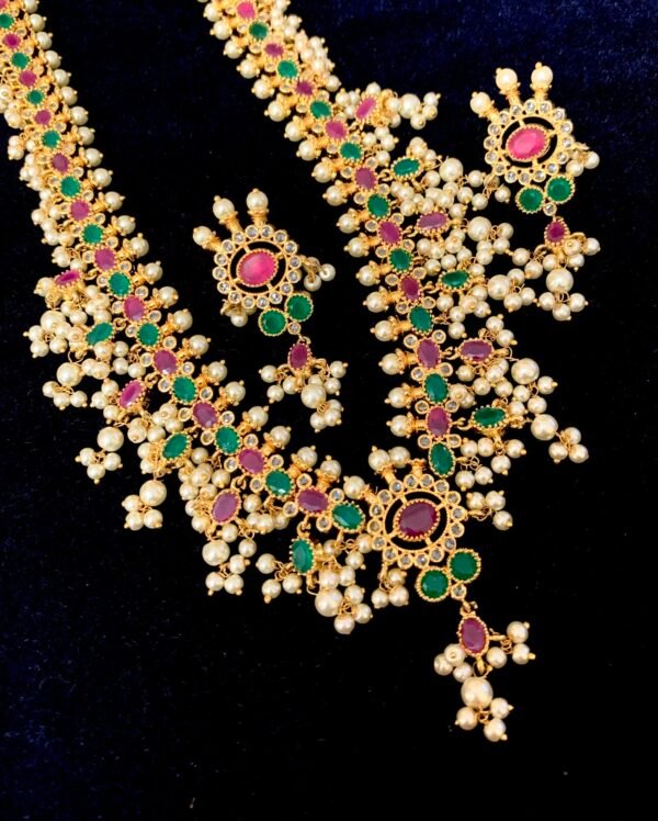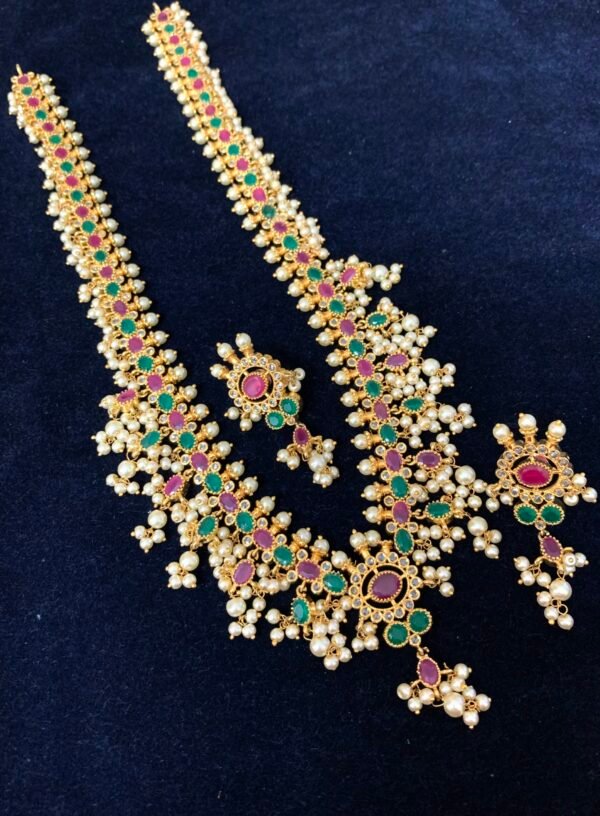 2 in 1 haram and vaddanam uncut stone long necklace waist chain