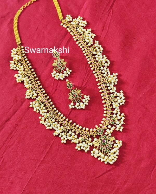 Guttapusalu long haram designs with peacock model pendant and earrings